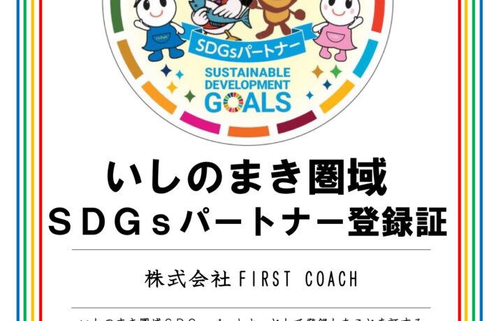 株式会社FIRST COACHは、SDGsに対する方針をまとめ、石巻市が、SDGsの普及啓発やその達成に向けた取組みの一環として制度設計した「いしのまきSDGsパートナー」への登録を行いましたので、その内容についてお知らせいたします。