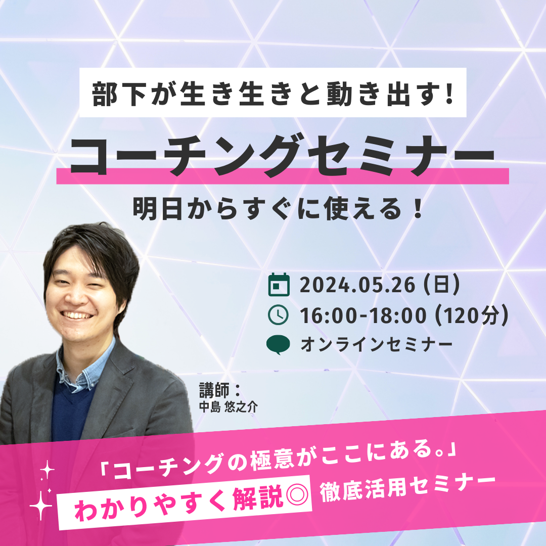 【オンラインセミナー開催のお知らせ】部下が生き生きと動き出す!コーチングの極意